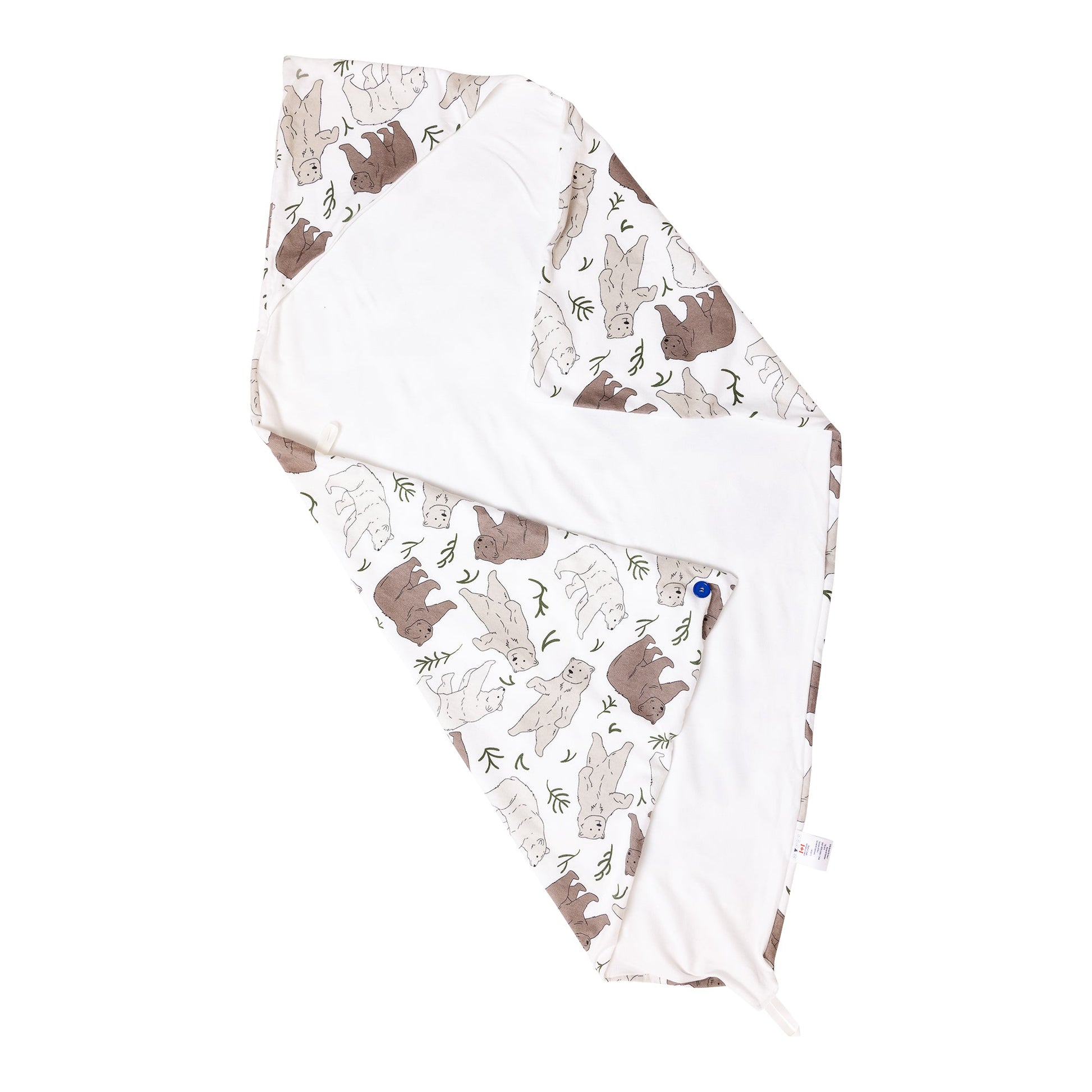 A: Our patented loop-and-button design lets caregivers wear the towel, keeping both hands free to safely lift and wrap their baby after bath time.