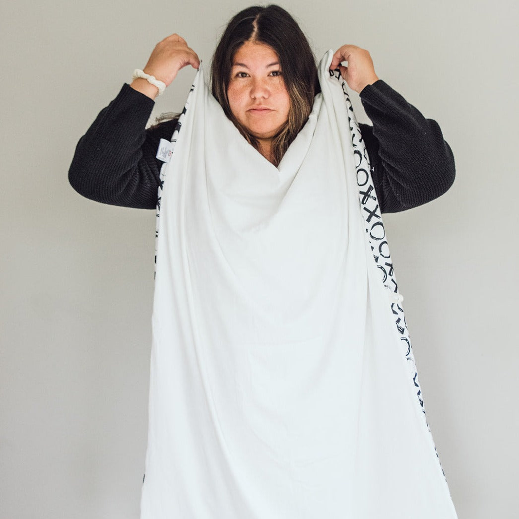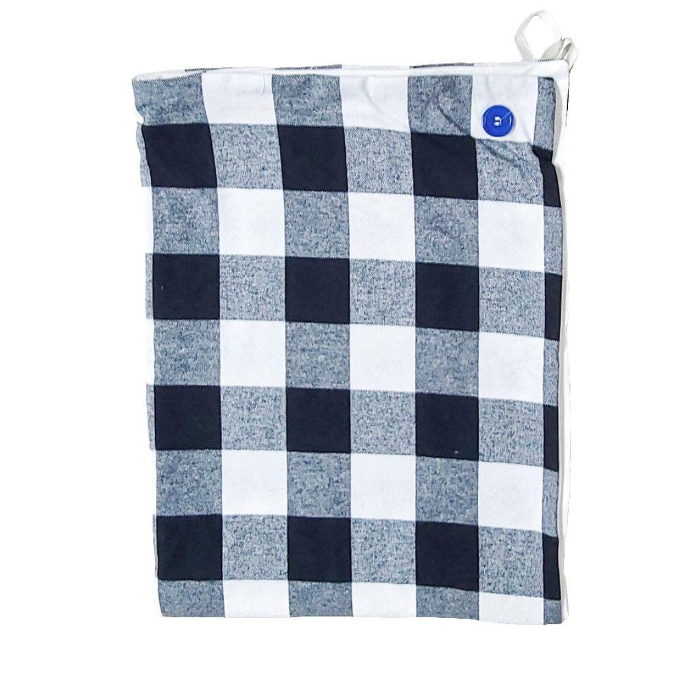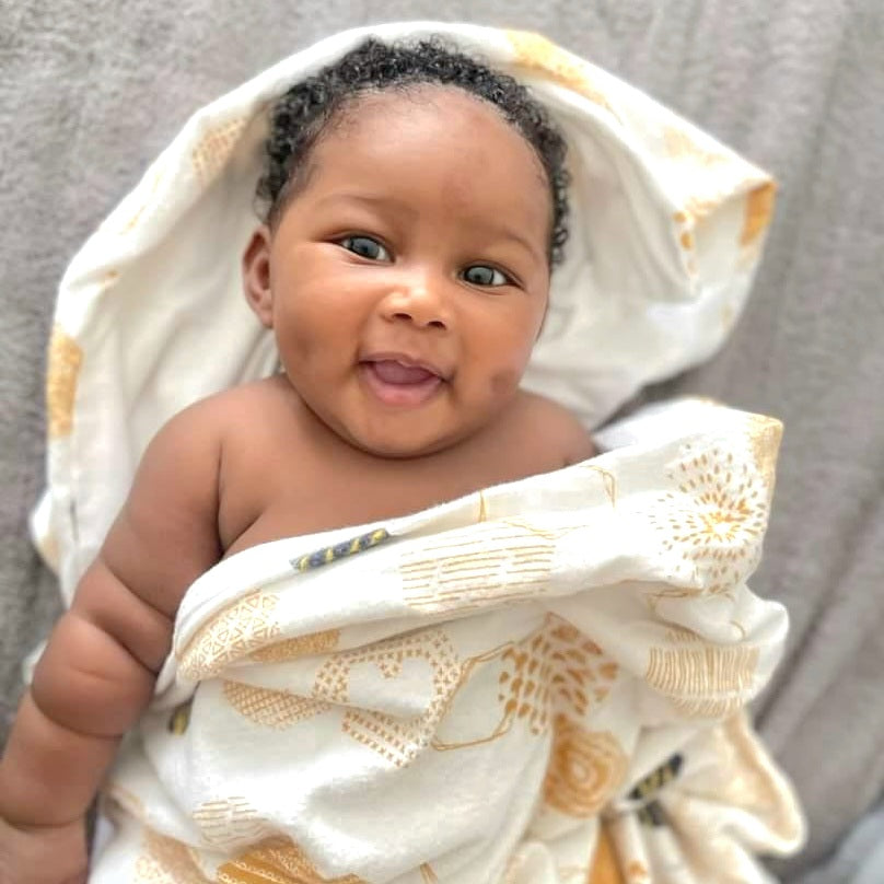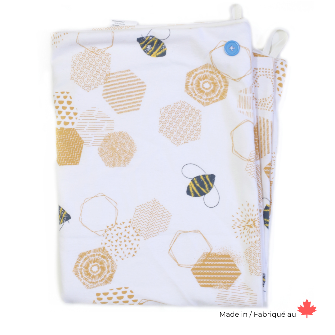 Loop and button your towel around your neck. Vertical for a newborn, Horizontal for an infant. When you are all finished, pick baby up with two hands and cuddle them into your chest. Wrap the towel around them and share the love of togetherness.