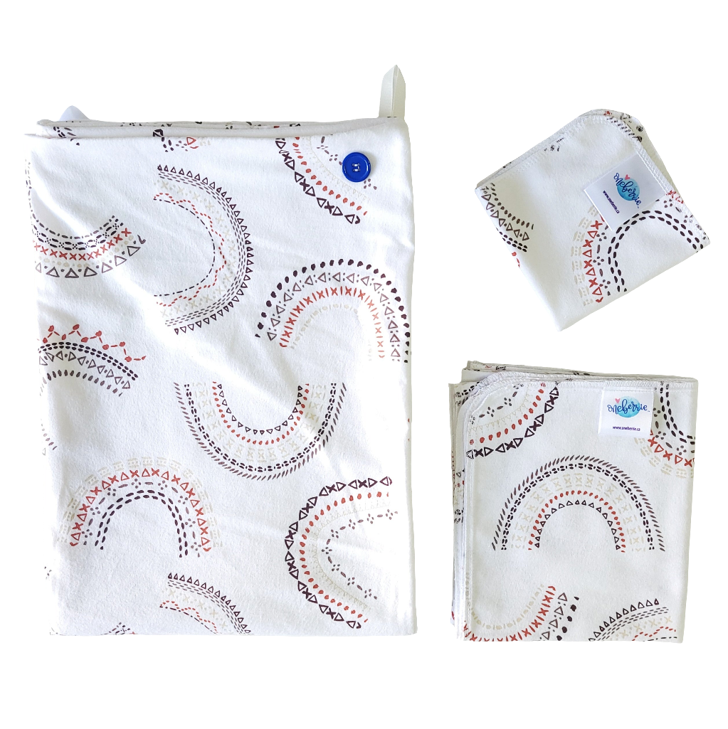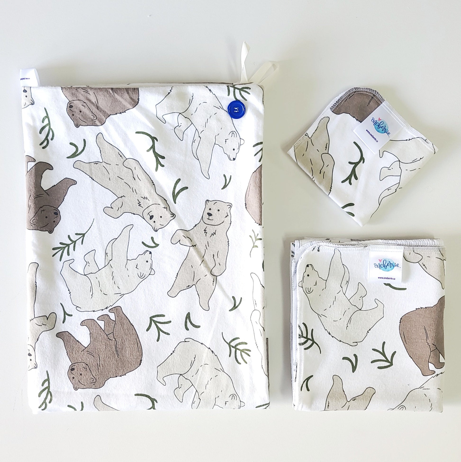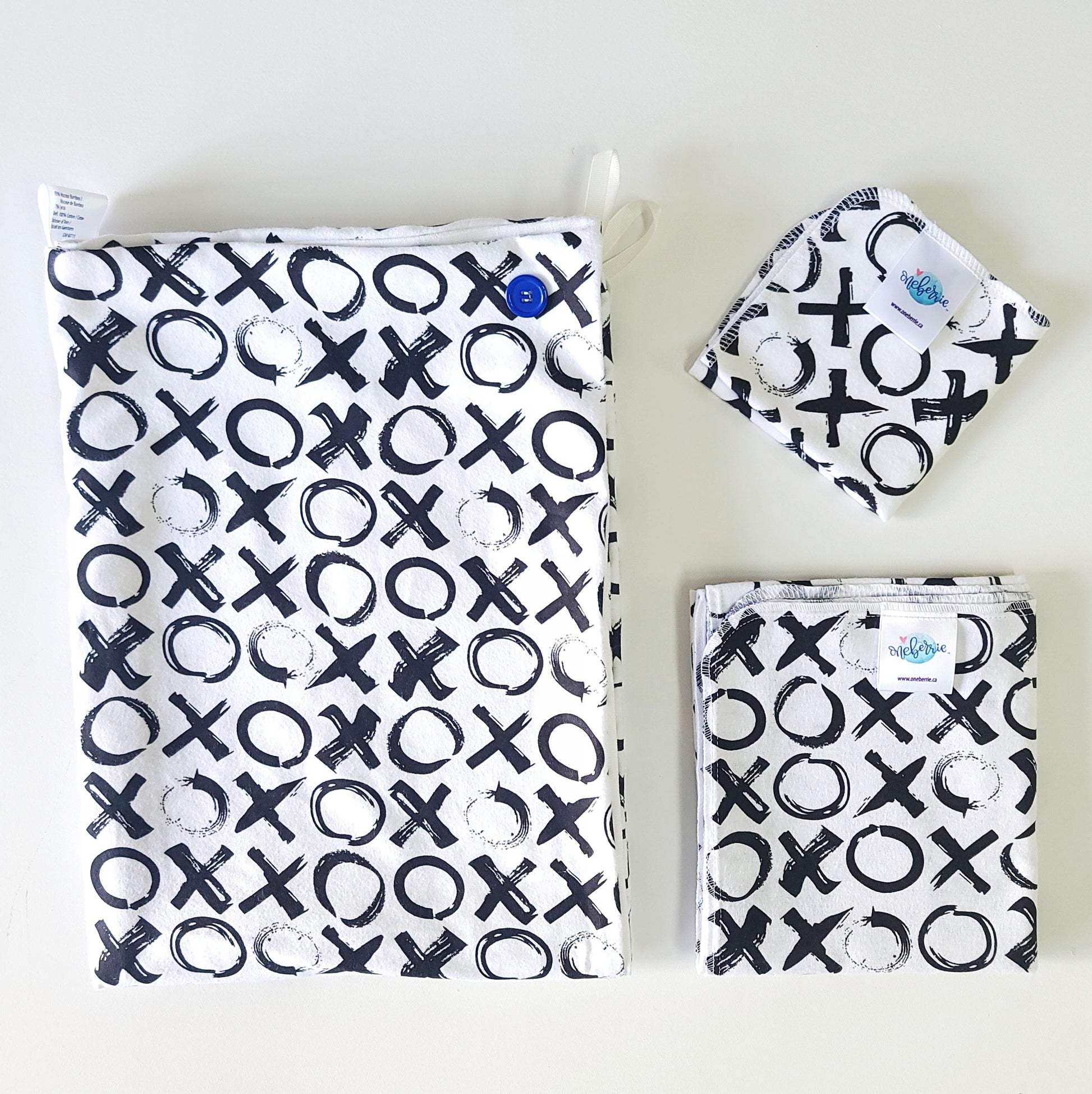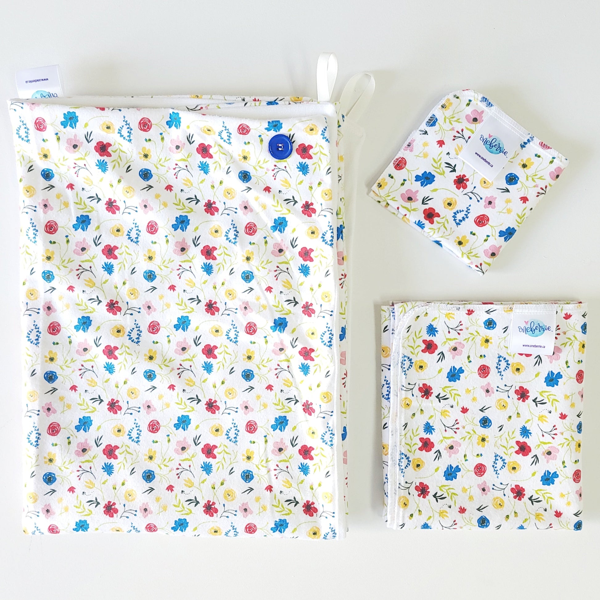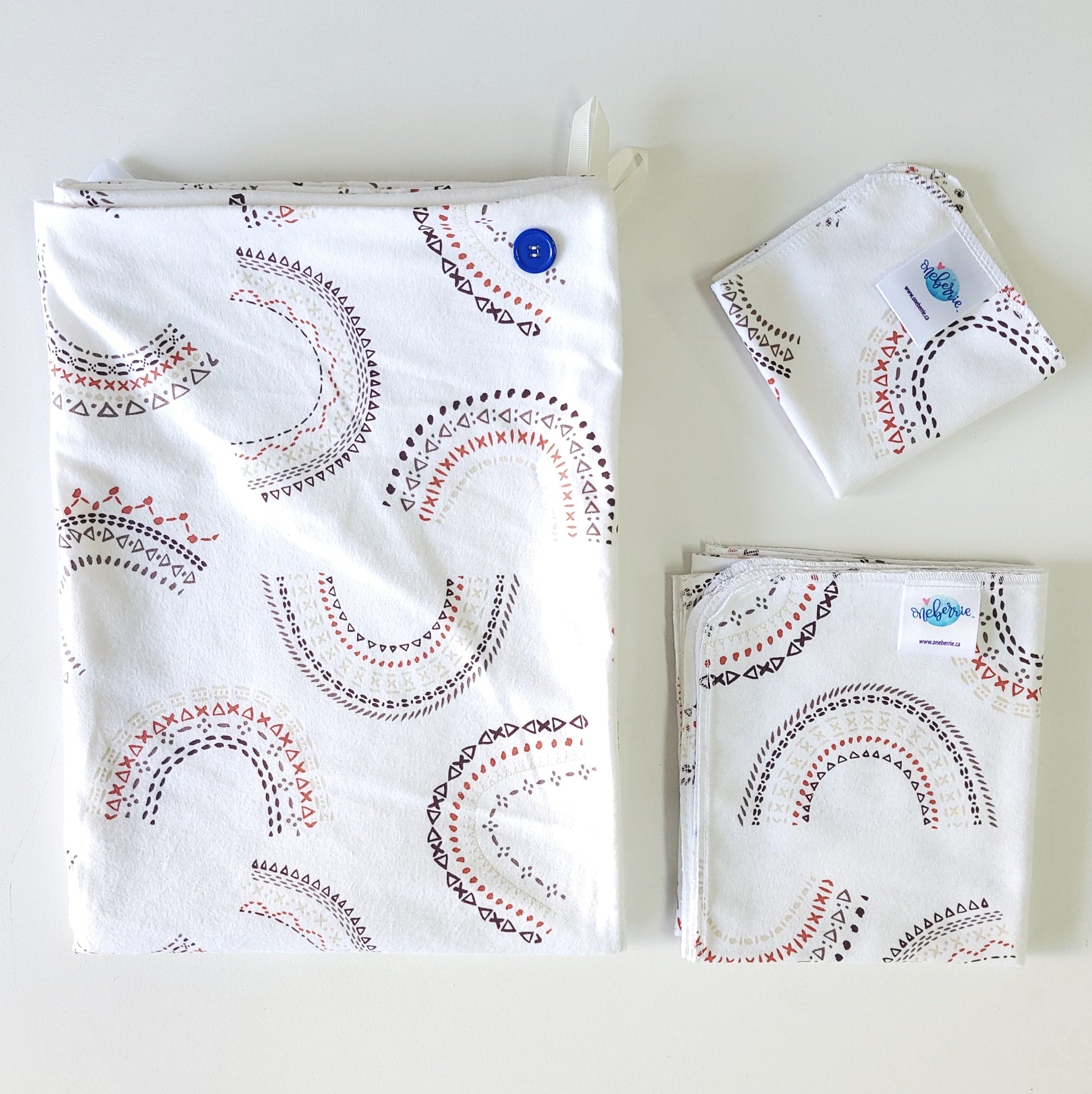 All fabrics are exclusive to Oneberrie and selected for their softness, absorbency, developmental and sensory-safe properties.
