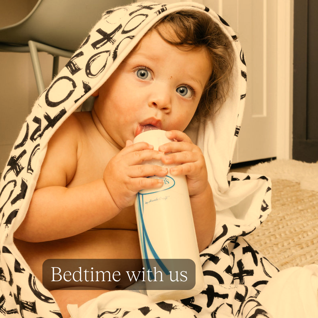 Tech cribs rock and bounce. Sleep sacks insulate. Swaddles hold tight. But none of them build lifelong habits around sleep skills. Our patented, wearable Good Night Towels help parents create calm, build sleep cues, and make bedtime routines feel natural — starting at bath time.
